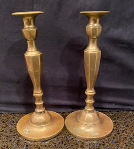 Pair of vintage solid brass candle sticks made to hold glass shades if desired.
